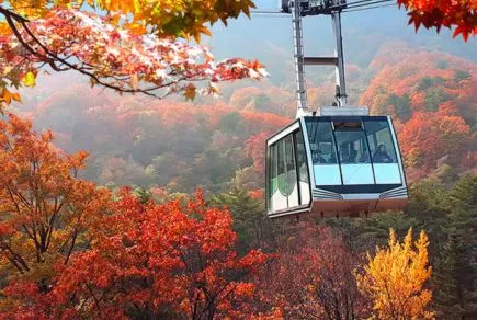 Naik cable car ke puncak, panorama warna-warni autumn terbentang seluas mata memandang, cocok untuk makanan sosmedmu.
